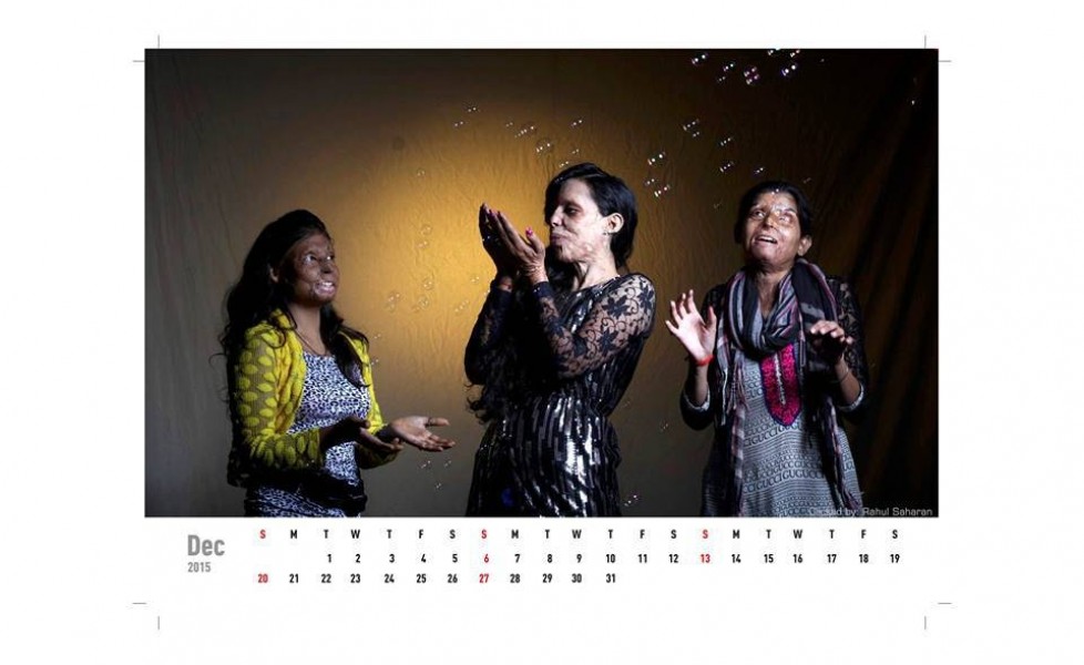 Il calendario è stato realizzato grazie alla fondazione no-profit Chhanv, che cura tutto quanto gravita attorno alla riabilitazione delle donne indiane vittime di un attacco con l’acido e partecipa alla campagna Stop Acid Attacks, sorta a Nuova Delhi nel 2013.