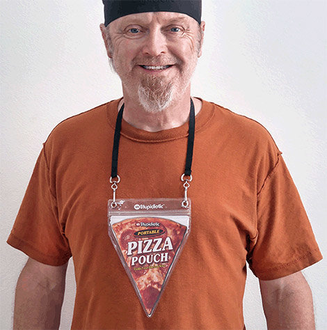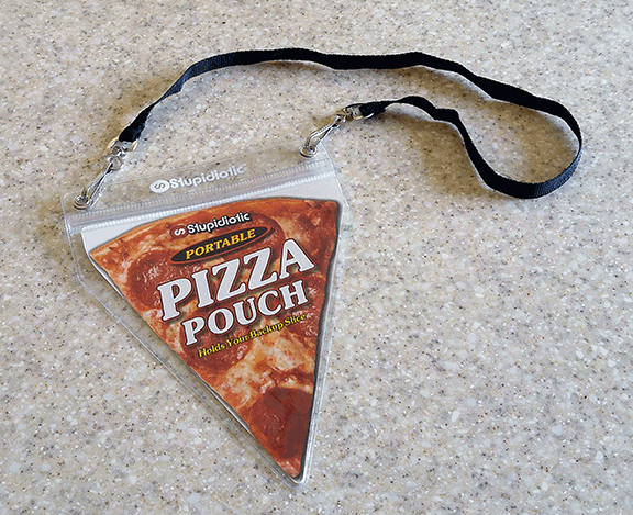 Il Portable Pizza Pouch permetterà di portarsi la pizza sempre vicino al cuore grazie ad un laccio strettamente agganciato alle estremità del triangolo. A vendere questo fantastico oggetto è il sito Stupidiotic, al bassissimo prezzo di 8$.