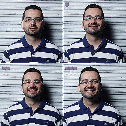 Il project wine di Marcos Alberti, dimostra effettivamente tramite le sue fotografie quanto l’espressione del viso cambi in base a quanto vino si consuma, notando una scarsa differenza con un solo bicchiere che invece diventa massima dopo tre. Profondi sorrisi, nasi arricciati, facce rilassate e divertenti, questi sono i cambiamenti di espressione che si possono subito notare soprattutto dopo il terzo bicchiere.