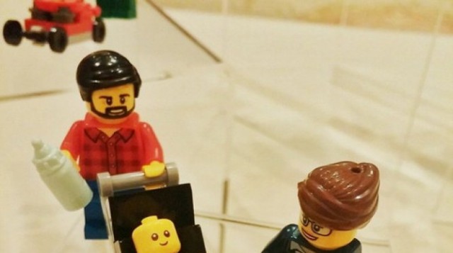 Invenzione attuale della Lego riguarda il modellino che rappresenta l’immagine del papà moderno: look hipster, biberon in mano e passeggino da spingere, affiancato dalla mamma vestita con la divisa lavoro.
