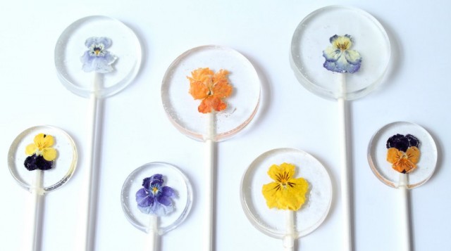 Un’azienda con sede in Georgia realizza artigianalmente lecca lecca di fiori utilizzando fiori freschi commestibili, acqua filtrata e puro zucchero di canna; niente coloranti né aromi artificiali di nessun tipo, si tratta di lecca lecca completamente naturali.