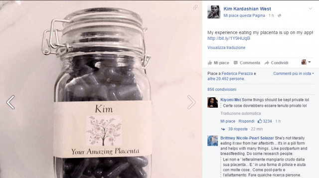 C’è chi la critica dicendo “Alcune cose dovrebbero essere tenute private”, chi si lamenta di dover pagare per leggere quanto scritto, e chi ancora ci ricorda che la Kardashian aveva già ingerito pillole di placenta dopo la nascita della sua bimba qualche anno fa, e che queste fanno bene per svariate cose, tra le quali l’allattamento post-partum.