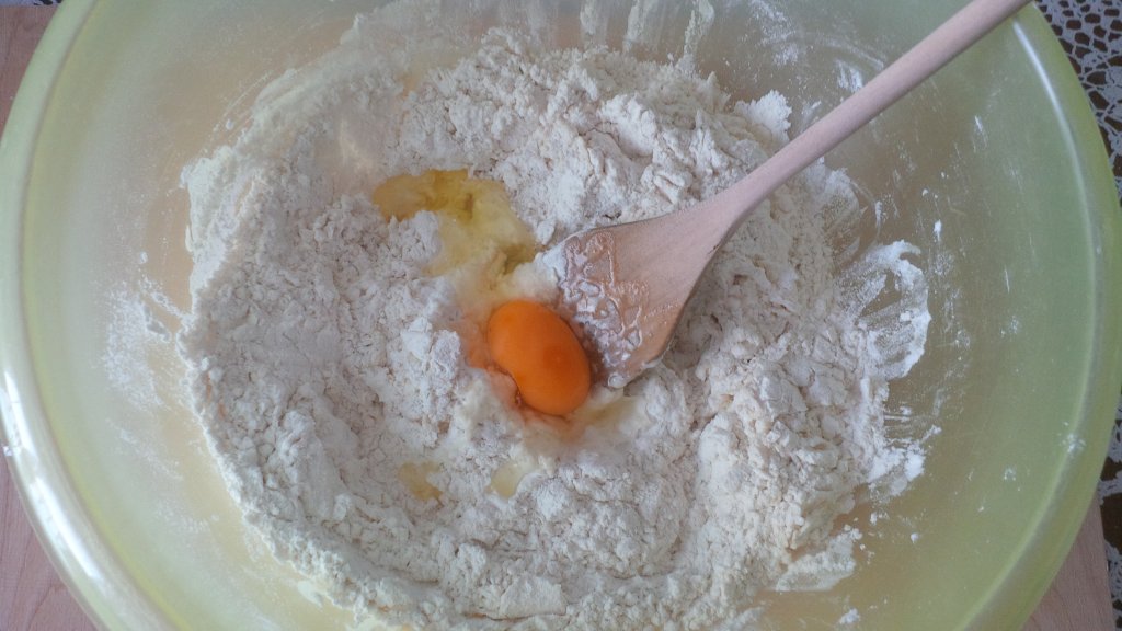 Per questo dolce devi montare le uova intere con lo zucchero e l’aroma di vaniglia fino a quando non ottieni una crema bella spumosa e di colore chiaro.