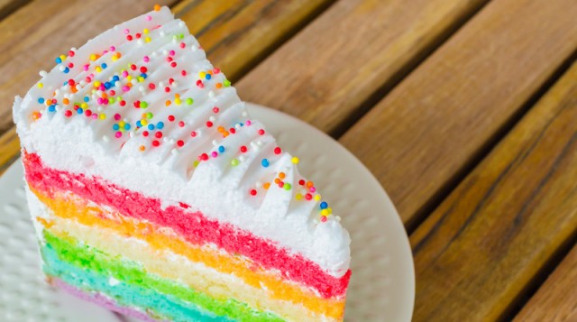 Altrimenti, se volete qualcosa di davvero eccezionale, bisogna seguire la strada più lunga, con sei pan di spagna di colori diversi, assemblati con panna montata, crema pasticcera o crema al cioccolato.