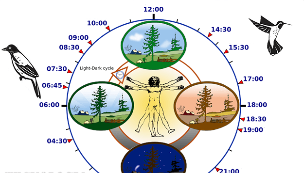 La nostra giornata è un ciclo diviso in due fasi, che vanno insieme al sole: una che dura per tutto il giorno, un’altra che inizia quando il sole tramonta. In ognuna di queste due fasi il nostro organismo produce degli ormoni e la cronobiologia studia gli effetti che seguono la produzione di questi ormoni.