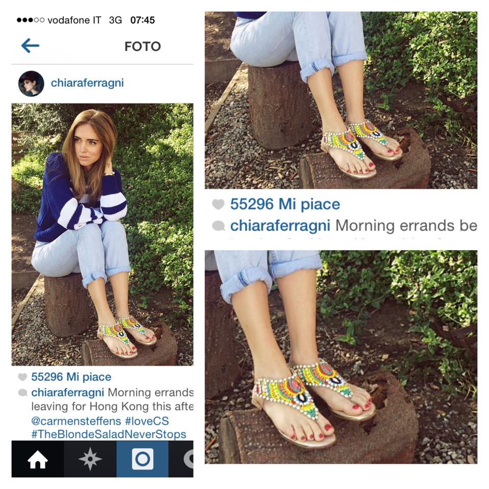 Basta focalizzarsi con lo sguardo e l’attenzione proprio lì, in basso, sui suoi piedi. Fasciati da tacchi altissimi o ballerine super comfy, in sandali o zeppe colorate, i piedi di Chiara Ferragni destano qualche polemica. “Ma che brutti!”, commentano alcuni. Ma i più spietati amici del web non si trattengono. Ed ecco le critiche peggiori: “No ti prego, le dita dei piedi che escono dalla scarpa proprio no”, oppure “Sono i piedi che fanno schifo alle scarpe o viceversa? Brr”, fino ad arrivare al più epico “ALLUCENANTE!”.