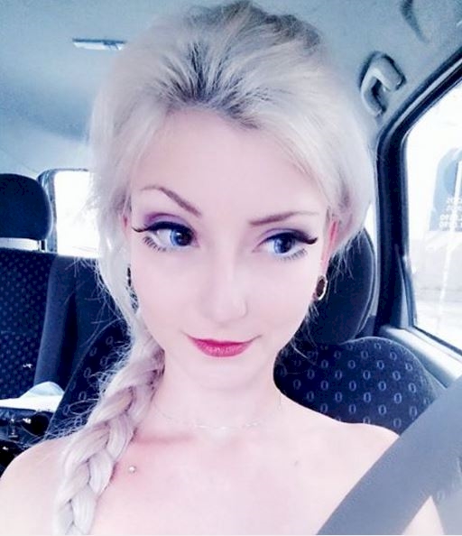 Dotata di sembianze – lei dice essere naturali – tipiche delle bambole più proporzionate al mondo e di un viso di quella che sembra vera porcellana, in lei è possibile ritrovare proprio la regina dei ghiacci più conosciuta al mondo, eccezion fatta per gli occhi che si tingono di azzurro solo grazie alle lenti a contatto.