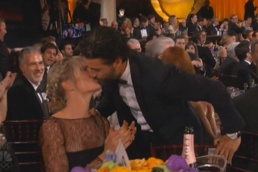 Did Oscar Isaac just kiss a woman on the lips my whole world is torn asunder #GoldenGlobes