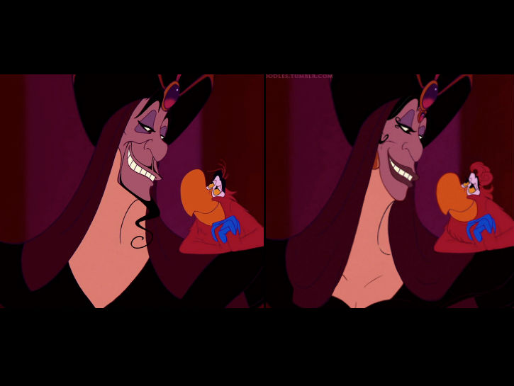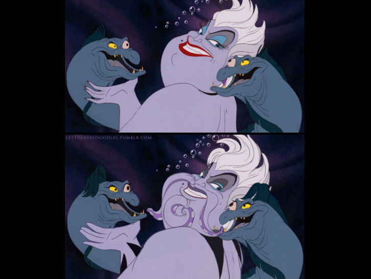Le immagini sono state create da un’utente di Tumblr, Let There Be Doodles, che già tante volte si era dilettata nello sconvolgere l’aspetto dei nostri beniamini. Il risultato è, come sempre, divertentissimo. Vedere gli antagonisti più odiati, come Jafar, Frollo, Capitan Uncino, Ade con rossetto, mascara, e-lyner, ombretto ed acconciature come appena uscite dal parrucchiere ci fa sbellicare dalle risate e, ammettiamolo, li rende un po’ meno pericolosi ai nostri occhi.