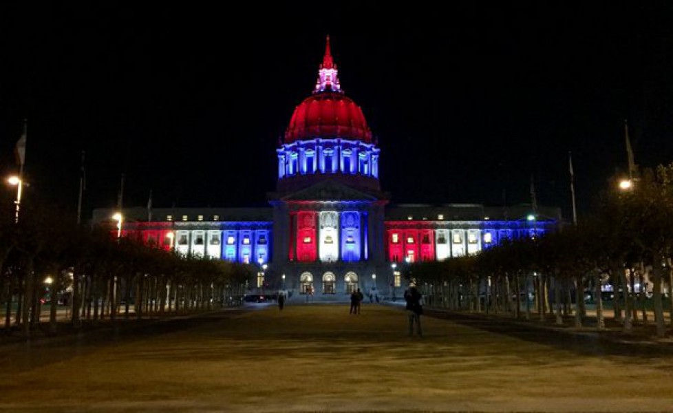 Il municipio di San Francisco, lo stadio Wembley a Londra, il Nation Anthem a Washington, il One World Trade Center di New York, il Convention Center a Dublino, Dallas e Città del Messico, ma anche il Cristo Redentore a Rio de Janeiro e il Cn Tower a Toronto: il tricolore francese fa il giro del mondo.