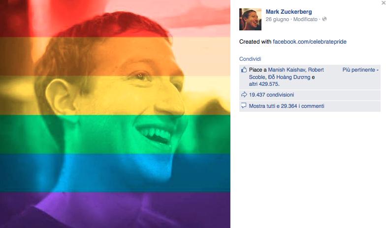 Quando c’era bisogno di mostrare solidarietà non si è tirato indietro. Ma anche quando c’era da festeggiare il web è sempre stato presente. Vi ricordate le foto profilo arcobaleno di Facebook quando, il 26 giugno, in tutti gli Stati Uniti sono diventate legali le unioni civili? E quelle con la bandiera francese dopo i tristi fatti di novembre degli attentati a Parigi? Hanno invaso le bacheche di tutti e lo stesso Zuckerberg le ha postate sul suo profilo.