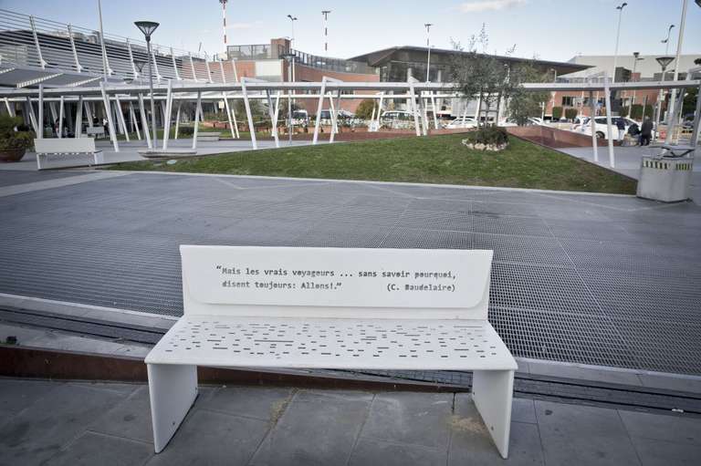 A Napoli, precisamente all’aeroporto di Capodichino, hanno pensato bene di creare un diversivo per permettere ai viaggiatori o anche solo a chi passa da quelle parti: incidere versi di canzoni e poesie sulle panchine alle fermate dell’ Alibus.