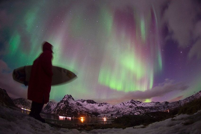 Le sfumature dei colori del cielo e del mare del Circolo Polare Artico sono in grado di far innamorare tutti, anche chi non ama il surf. Ma immaginate solo cosa provano coloro che lo amano e che lo provano in un posto tanto bello.