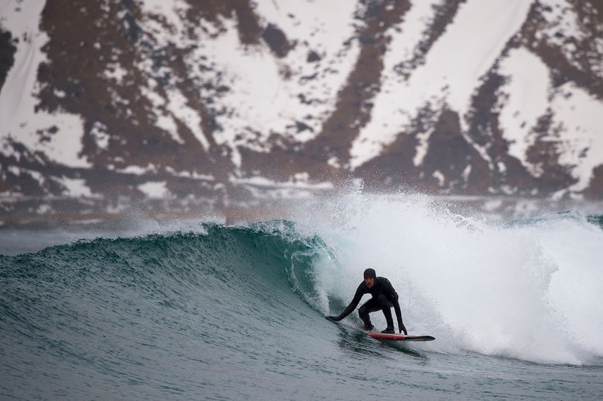 Tra le mete più ambite ci sono le isole Lofoten, che si trovano proprio nel Circolo Polare Artico. Le condizioni meteo, lì, sono veramente estreme e molto instabili. La temperatura dell’acqua è di circa 6-7 gradi, mentre quella esterna si aggira intorno allo zero. Che sensazione si proverà a cavalcare le onde più fredde del mondo su spiagge dove la sabbia non esiste e, al contrario, prevale la neve?