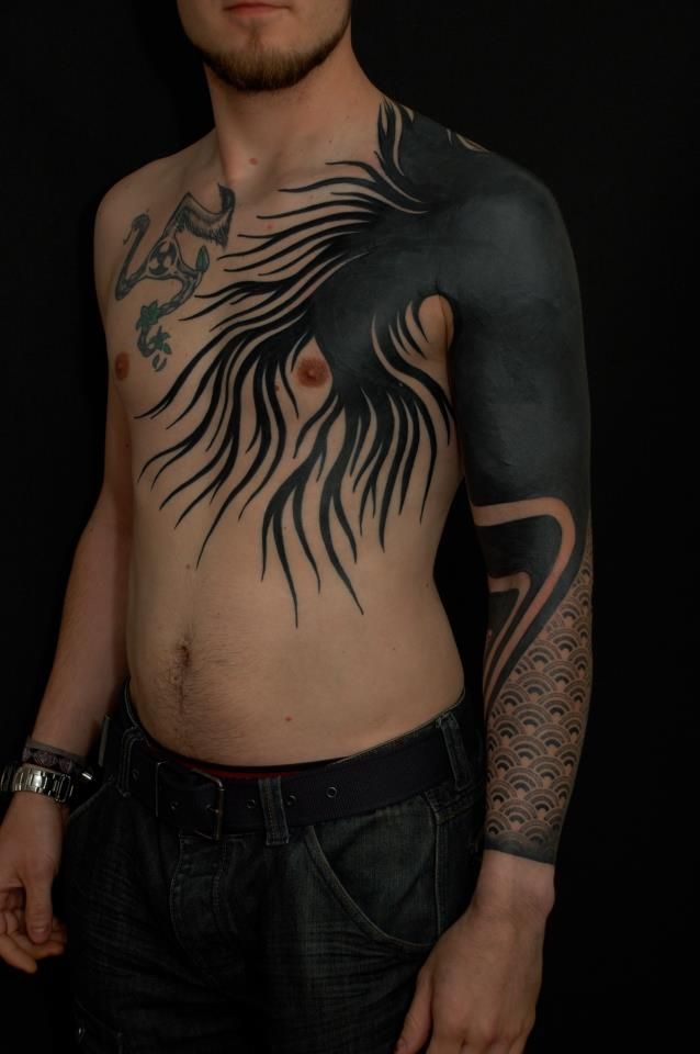 La nuova tendenza in fatto di tattoo prevede una copertura totale di una particolare zona del corpo con l’inchiostro nero, in alcuni casi con l’intento principale di nascondere vecchi tatuaggi scomodi.