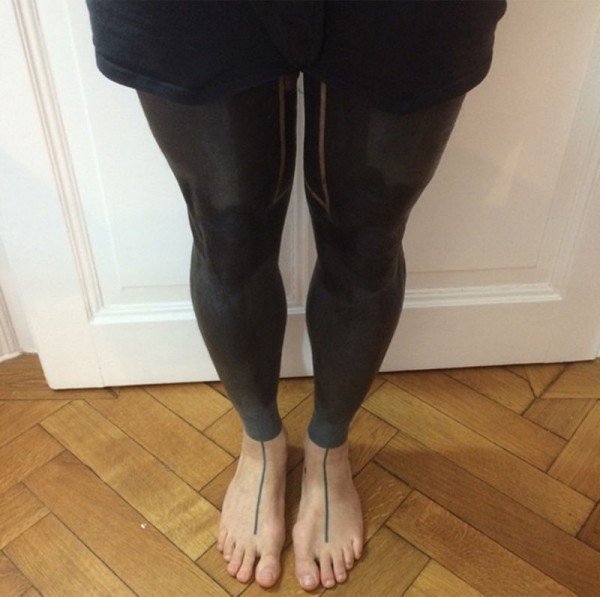 Il contrasto dato dai disegni fatti con il bianco o con le strisce non tatuate di pelle valorizza ancora di più il nero e focalizza lo sguardo sulla decorazione, che spesso ha un tema geometrico o classico, come teschi e rose.
