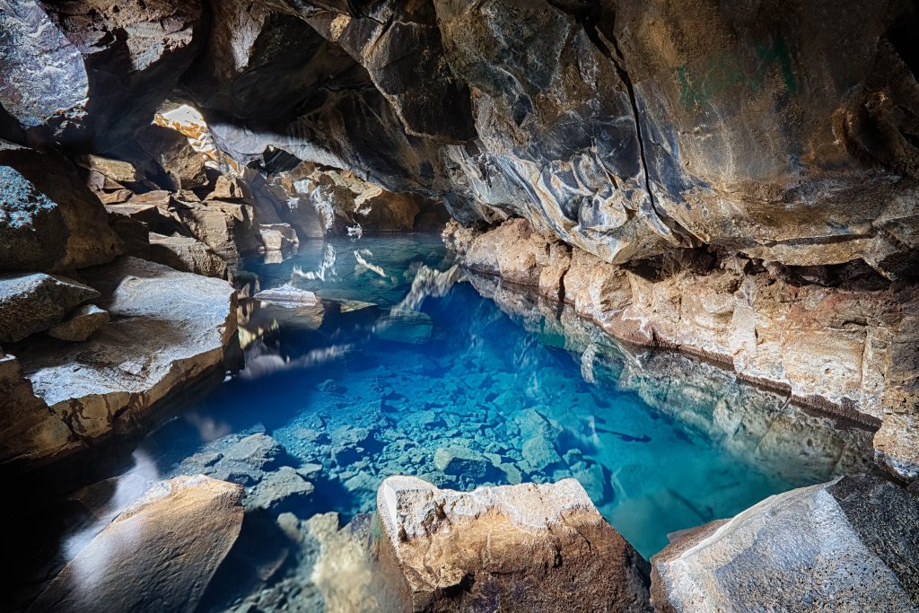 Una tra tutte però è la grotta di Griotaja, una piccola cava che si trova vicino al lago Mývatn. All’esterno la neve e il ghiaccio decorano l’ingresso e l’acqua della fonte termale può arrivare fino ai 50 ˚C.
