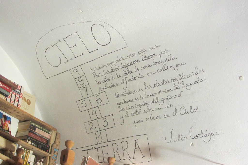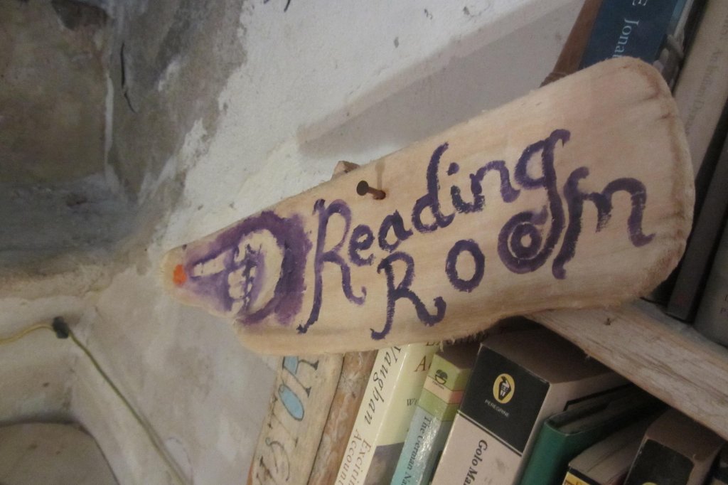 Finché, ad un certo punto, tra i vari negozi di souvenir presenti sulla strada principale non mi sono imbattuta in una libreria bellissima. Impossibile non vederla e non entrarci. Per me è stato amore a prima vista: un edificio tutto bianco, con disegni ed aforismi di vari autori e di vari temi – principali quelli della lettura e dei viaggi – sui muri, oltre ad esserci scritta tutta la storia della libreria.