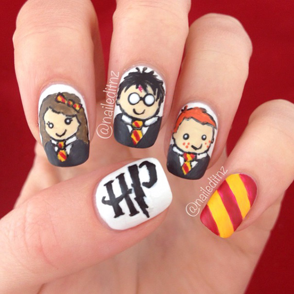Una tendenza molto in voga tra le ragazze che sognano di appartenere alla scuola di magia di Hogwarts, consiste nell’effettuare una manicure a tema Harry Potter. Costituita da unghie laccate e disegni di nail art difficili e meravigliosi quasi quanto un incantesimo del settimo anno.