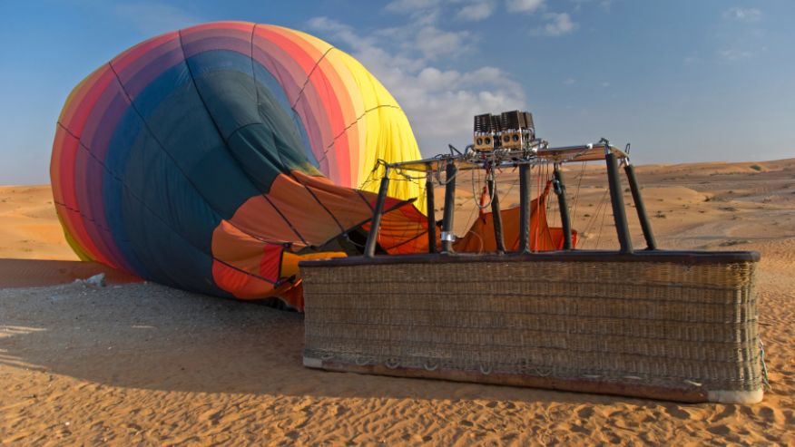 Una gita da nababbi a Dubai non può non prevedere un giro in mongolfiera, al di sopra delle sabbie rossastre della Riserva del deserto di Dubai. La compagnia che si occupa del servizio offre persino il trasporto gratuito fino alla piattaforma di lancio per coloro che soggiornano in albergo a Dubai.