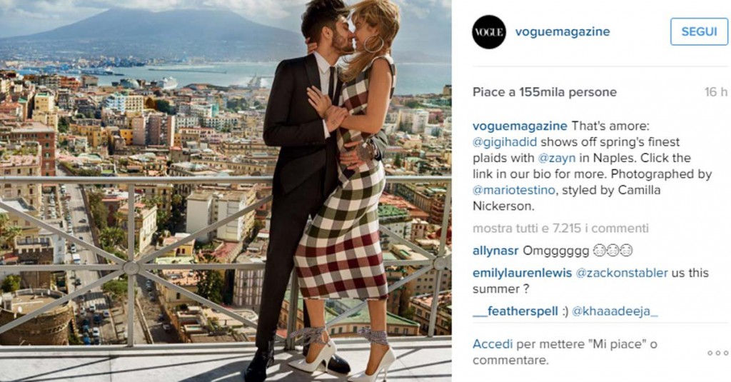 Due ragazzi, mano nella mano, che si baciano sotto il sole di Napoli. Non ci sarebbe nulla di strano se ad essere immortalati fossero Zayn Malik e Gigi Hadid. L’ex dei One Direction e la modella americana si frequentano dallo scorso novembre e dopo una serie di conferme e smentite, i due hanno deciso di mettere a tacere le voci, uscendo ufficialmente come una coppia a tutti gli effetti. A dar conferma della loro unione è il servizio fotografico, romanticissimo, che il magazine Vogue ha scelto per loro.